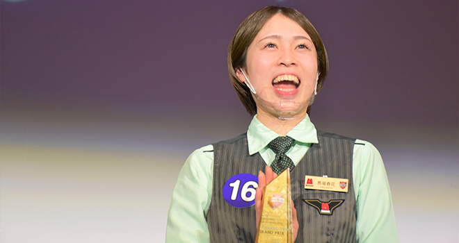 2022年度の第6回マルハンサービスグランプリ北日本カンパニー大会は、北日本カンパニーが管轄する14道県※の全108店舗から3,143名のスタッフが参加。店舗大会、エリア大会、ブロック大会を経て選出された21名のファイナリストがカンパニー大会に出場し、グランプリは東三条店の馬場春花さんに決定しました。2位は寒河江店 西尾査貴子さん、3位は弘前石渡店 舘山耕大さんでした。※北海道、青森、岩手、秋田、山形、宮城、福島、愛知、岐阜、富山、福井、石川、新潟、三重