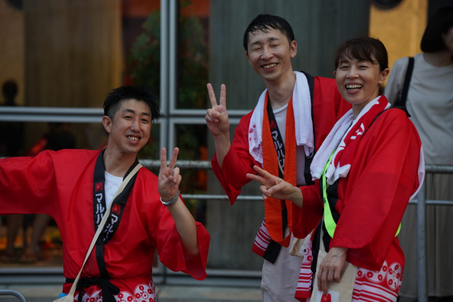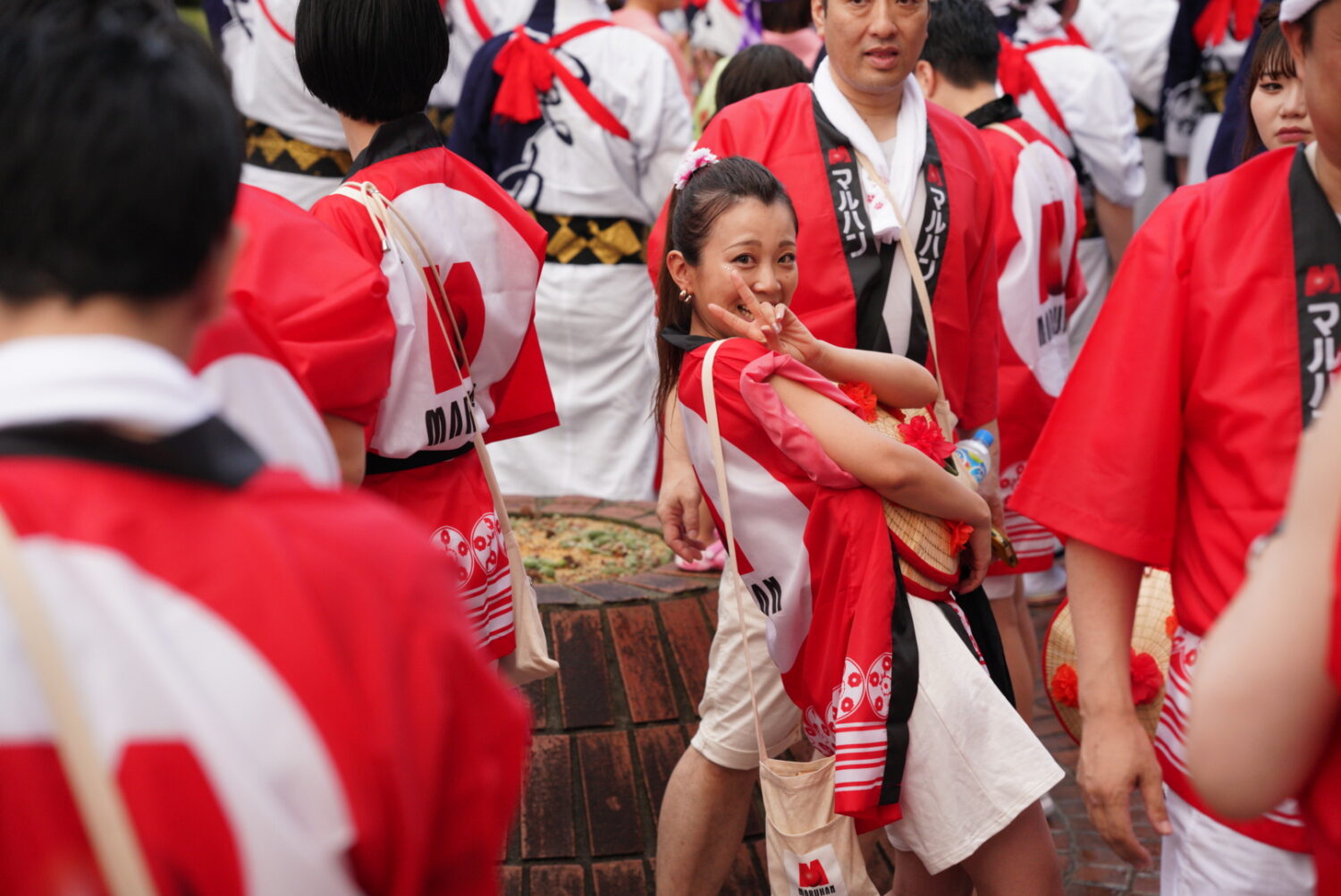 会場では、マルハン制作のオリジナルうちわを配布し、そのデザインが来場者に大好評でした。「きんに君のうちわだ!」という声も飛び交い、会場の盛り上がりに一役買いました。また、祭り会場の近隣店舗のお客様からは「見に行ったよ!」や「踊り良かったねー!」といった温かいお言葉をいただき、地域の皆様との絆を再確認する場ともなりました。