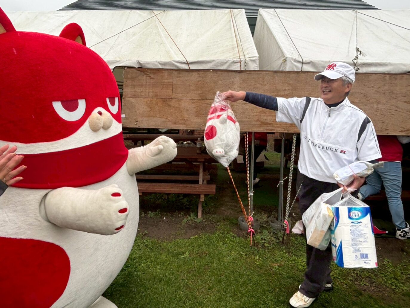 大会中にはマルハン公式キャラクター「にゃんまる」の着ぐるみも登場!コース上や受付、休憩所で参加者の皆様と触れ合い、写真撮影や会話のきっかけとして大活躍でした。
