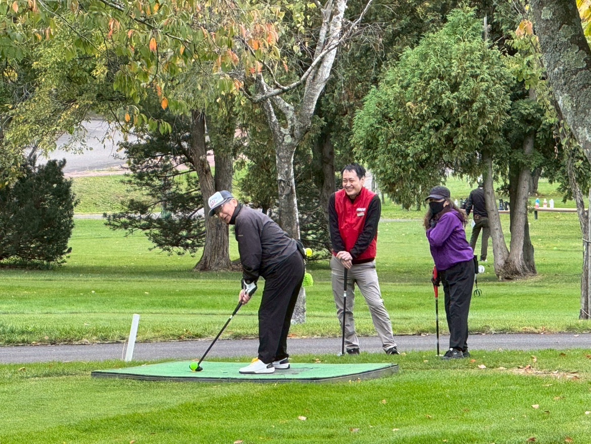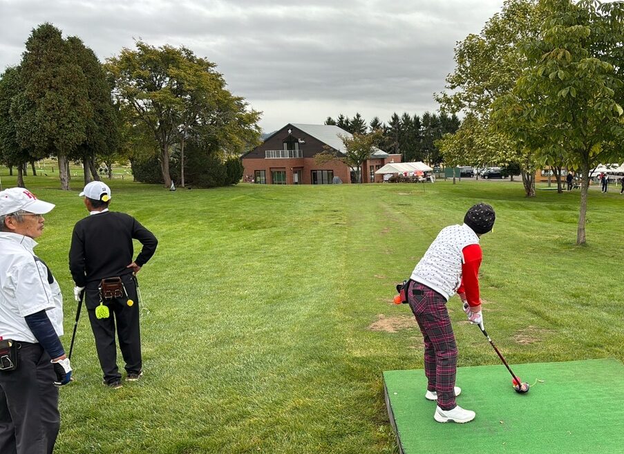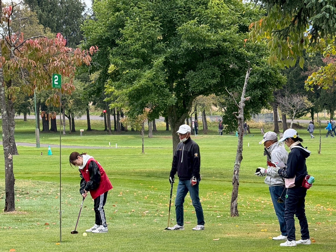 ラウンド中は参加者の皆さんと趣味や地域の話題で会話を楽しむ時間もあり、約4時間のラウンドを通して、世代を超えた交流や笑顔が自然に生まれました。各ホールでは、ルールの確認やアドバイスも行いながら、参加者がより安心して楽しめるようにサポートしました。パークゴルフの楽しさだけでなく、地域の方々との交流も存分に体験できる時間となりました。