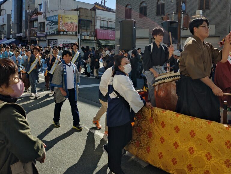 氏郷まつりは、松坂城初代城主・蒲生氏郷公を顕彰する市民の祭りです。毎年11月3日に開催され、武者行列や楽市楽座、ステージイベントなど、多彩なプログラムで松阪の歴史と文化を盛り上げています。特に、甲冑をまとった武士、冬姫、鉄砲隊など総勢200名による大行列は、迫力満点の名物イベント。当日は家族連れから観光客まで多くの方が訪れ、松阪の秋を彩る一大イベントとなりました。