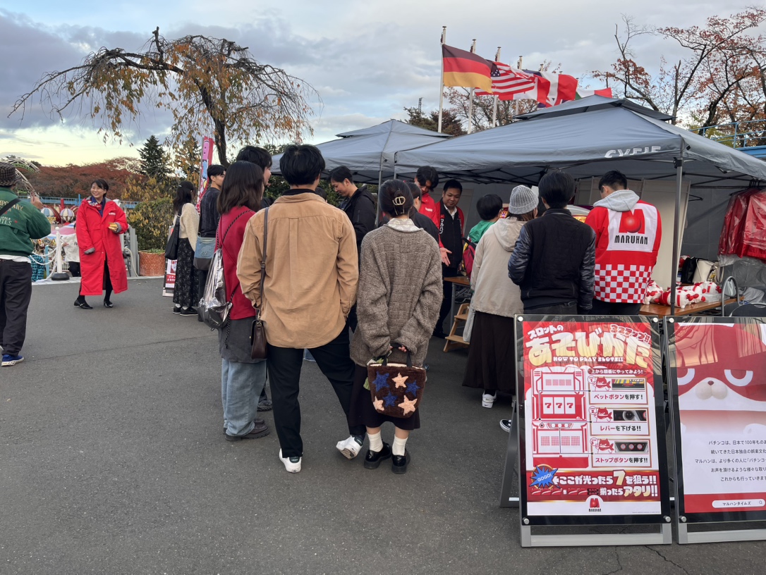 マルハン北日本カンパニーは、ジャパニーズ娯楽であるパチンコ・スロットの楽しさを幅広い世代に伝えるとともに、地域の皆さまとのつながりを深める取り組みを積極的に行っています。11月3日、仙台市太白区で開催された「第18回 秋の八木山フェスタ」に参加し、マルハン仙台苦竹店・仙台新港店のスタッフと北日本カンパニー硬式野球部のメンバーが、遊園地の一角に設けられたブースで来場者の皆さまと交流しました。にぎやかな秋の風景の中、子どもたちや家族連れとのふれあいで、地域のにぎわいづくりに貢献する1日となりました。