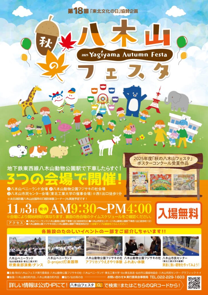 八木山フェスタは、八木山ベニーランド・八木山動物公園フジサキの杜・東北放送など地域施設が連携して開催される、秋の恒例イベントです。ステージイベントや地元グルメ、体験ブースなどが展開され、家族連れを中心に毎年多くの来場者で賑わいます。今年は6,000名以上の来場があり、マルハンブースだけでもたくさんの方にお立ち寄りいただきました。
