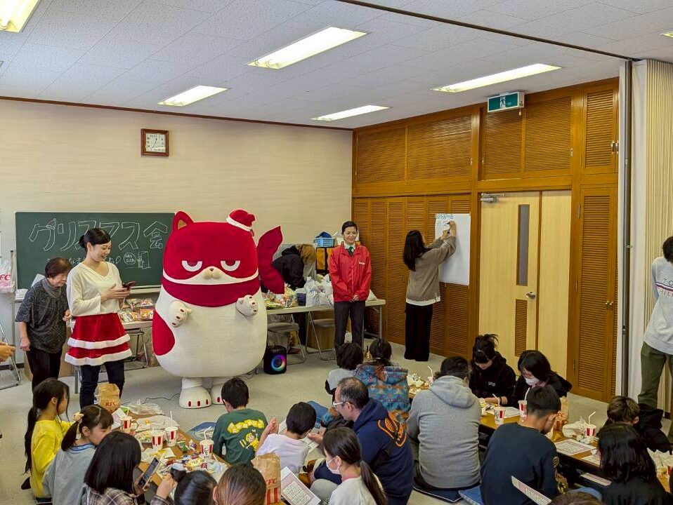 里塚団地自治会のクリスマス会は、地域の子どもたちやご家族が集まり、食事やゲームを通じて交流を深める恒例行事です。当日は約45名が参加し、会場には終始和やかな空気が流れていました。