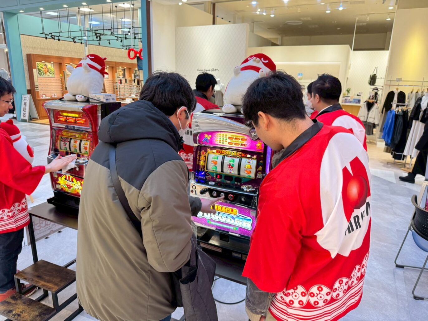 マルハン北日本カンパニーは、ジャパニーズ娯楽であるパチンコ・スロットの楽しさを伝えるとともに、地域の皆さまとのつながりを大切にした取り組みを行っています。今回は1月24日、山形県三川町のイオンモール三川様の催事スペースにて、「無料スロット体験企画」を実施しました。本企画は今回で2回目の開催となり、前回に続いて多くの方にご参加いただきました。