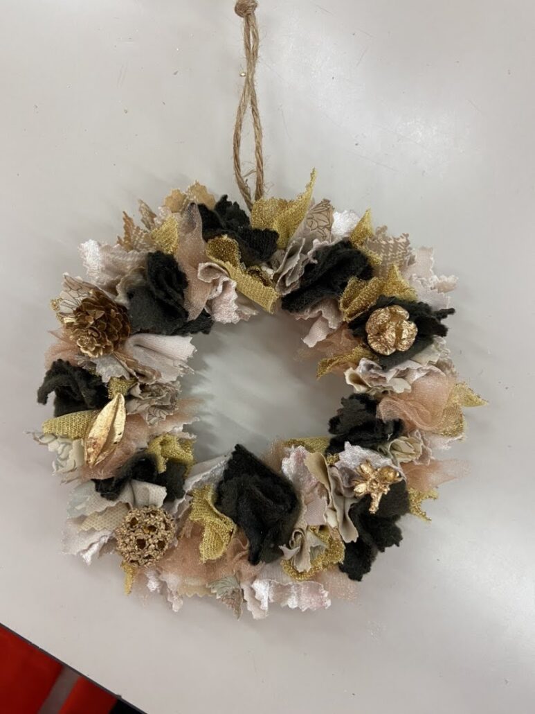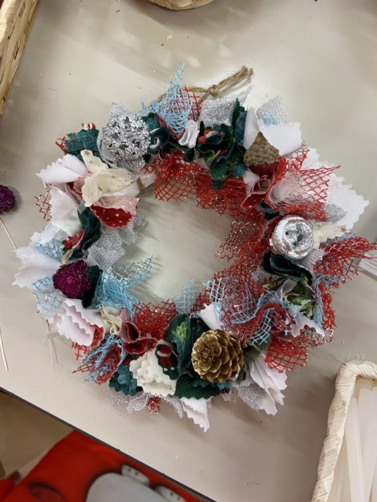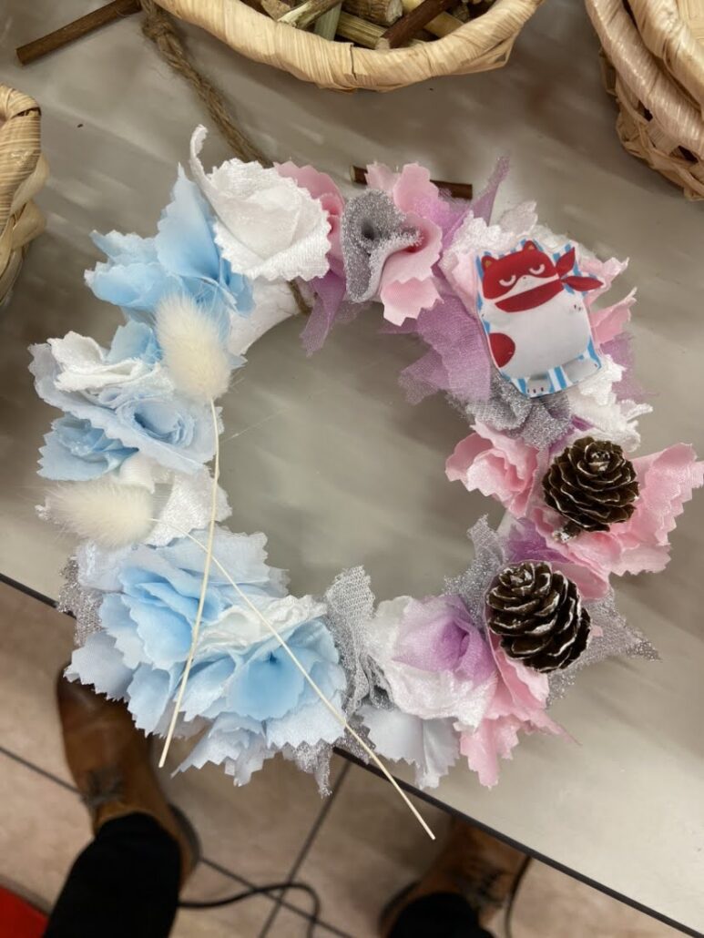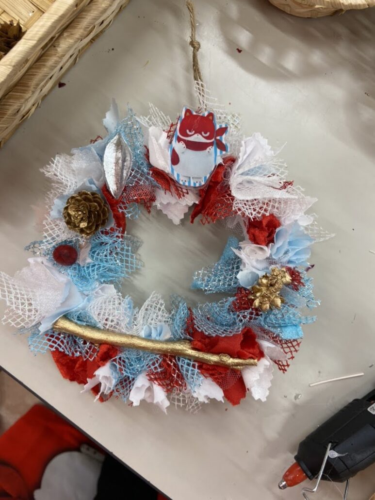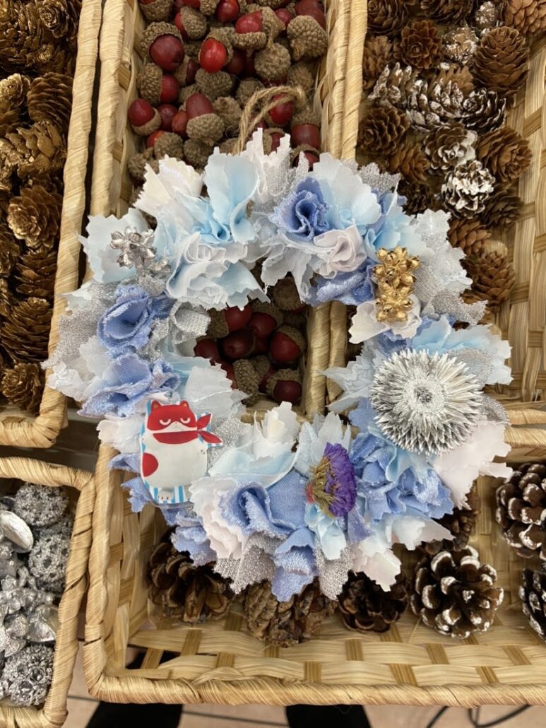 昨年も大好評を頂いたクリスマスリース作成企画、今年は服飾店「スタイリストゴトウ」様の協力を得て、自然素材を活用したリース作りに挑戦。布の端切れや木の実など、環境に配慮した素材を使いながら、302名の参加者が創意工夫を凝らして、特別なオリジナルリースを完成させました。