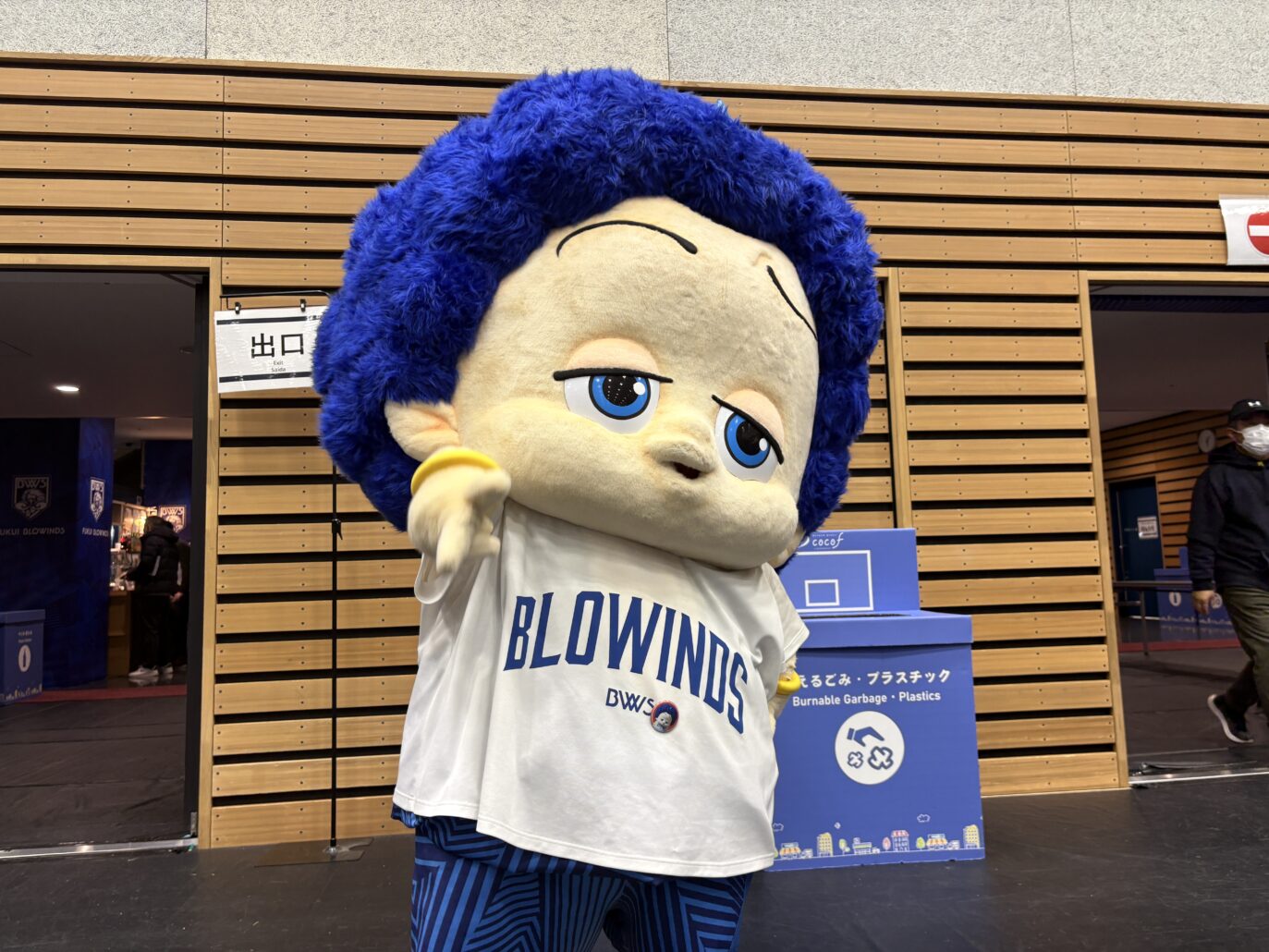 マスコットキャラクターBOOZのかわいさも見過ごすことはできません。BLOWINDSの守り神である風神の子どもとしてBOOZは誕生しました。好きなことは、誰かのために一生懸命、風を吹くこと。歓声が増すとBOOZの吹く風も勢いを増すそうです。私が会場で感じたあの勢いはBOOZのお陰だったようです。
