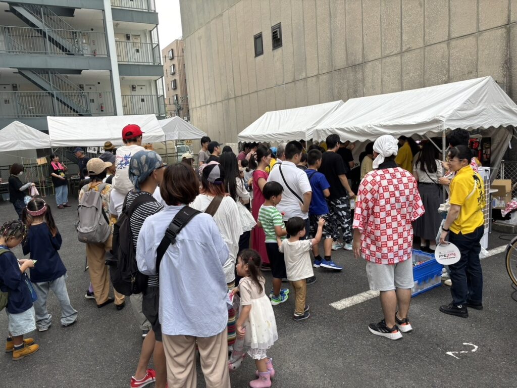 「いきいき今池お祭りウィーク」は、毎年名古屋市千種区で開催される地域最大級のお祭りです。屋台やステージイベント、パレードやダンス、お子さま向けゲームなどが行われ、今年も2日間で約13万人が来場しました。地域の人々が世代を超えて集うこの祭りに、マルハンからは計26名が参加。地域に根差した活動としてブースを盛り上げました。