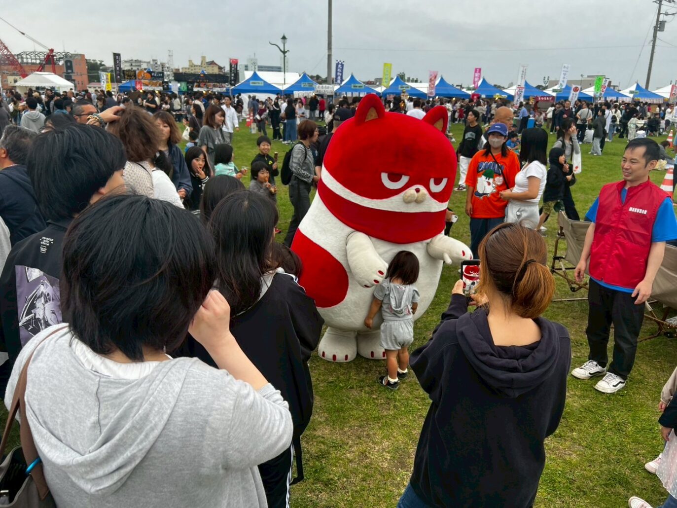 当日はスマートボールやスロット体験機を設置し、地域の皆さまに遊技の楽しさを体験いただけるブースを運営しました。お菓子のつかみ取り企画も実施し、お子さまから大人まで幅広い世代の方々に喜んでいただけました。また、マルハン公式キャラクター「にゃんまる」も登場し、多くの来場者に笑顔を届けました。