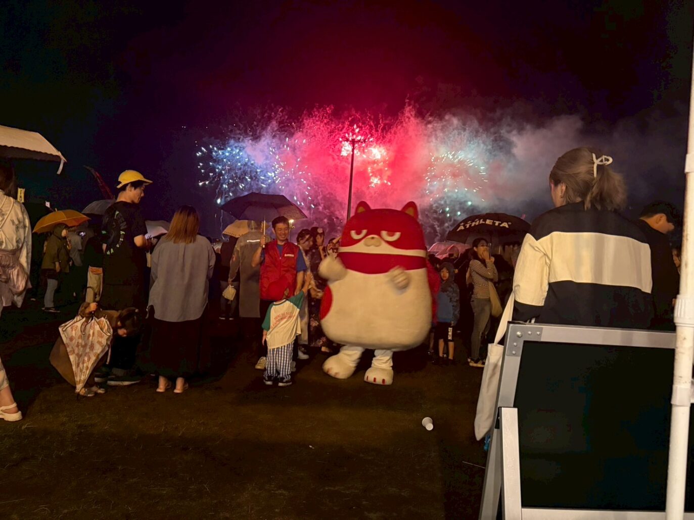 「釧路大漁どんぱく」は、大地の恵み・大海の幸・大空の華をテーマに開催される釧路市の一大イベントです。名前の由来は、花火があがる「どん」という音と、美味しいものを「ぱく」っと食べて楽しむことから。1万発の花火や開花直径約600メートルの三尺玉など、迫力ある花火大会が地域内外から多くの来場者を魅了します。そんな釧路大漁どんぱくに13日、マルハンから9名が参加し、ブースに遊びに来てくださったおよそ1,000名の来場者とふれあいました。