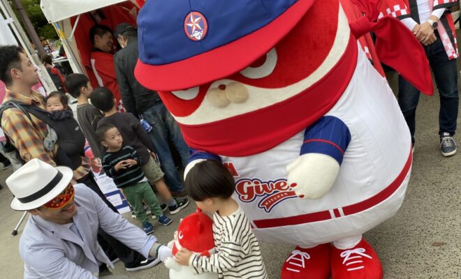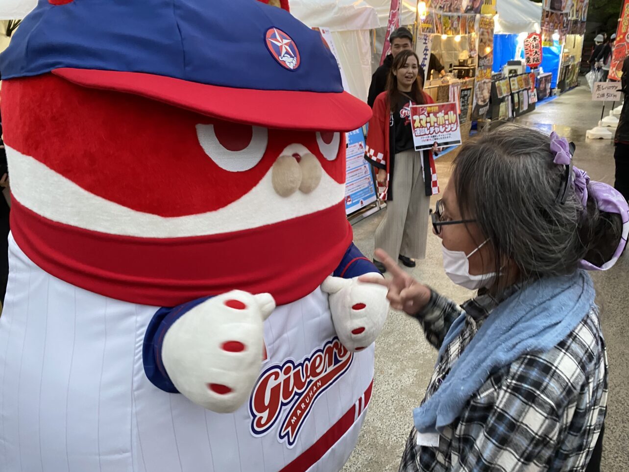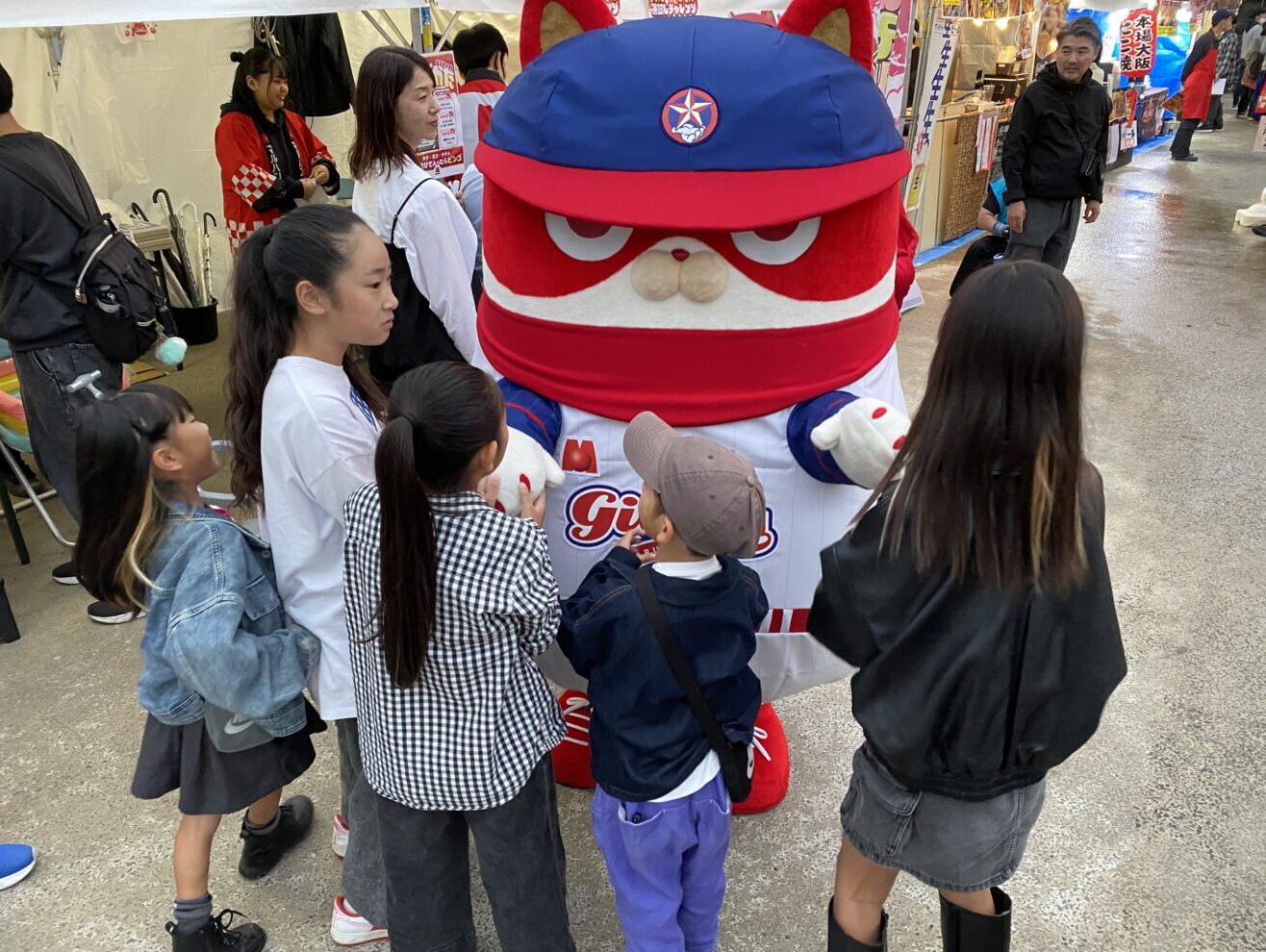 当日は、マルハン公式キャラクター「にゃんまる」もブース運営をサポートしました。今回はマルハン硬式野球部ギバーズのユニフォームを着て登場し会場の注目を集めました。ブース内や会場周辺でたくさんの子どもたちとの写真撮影をしました。