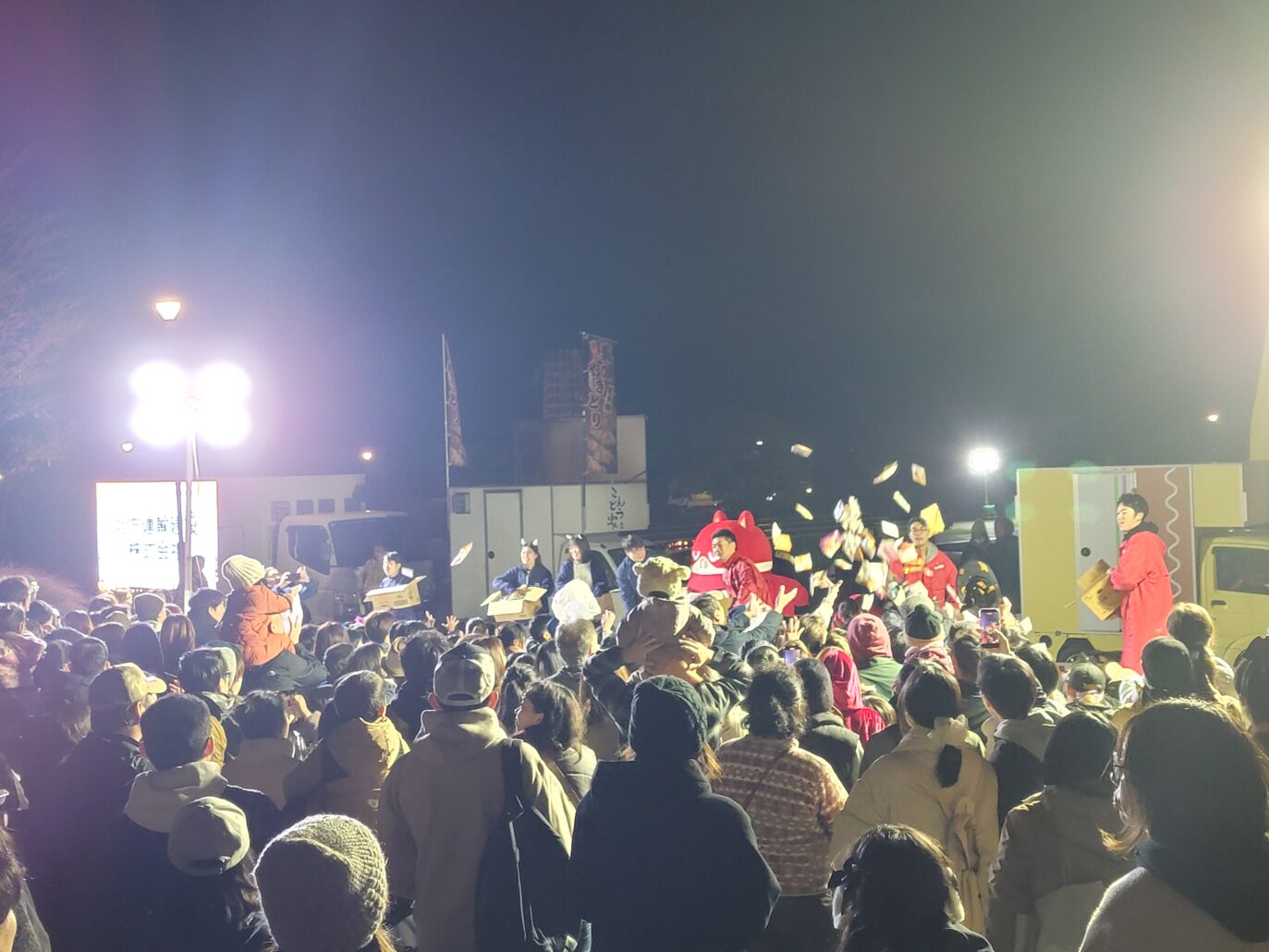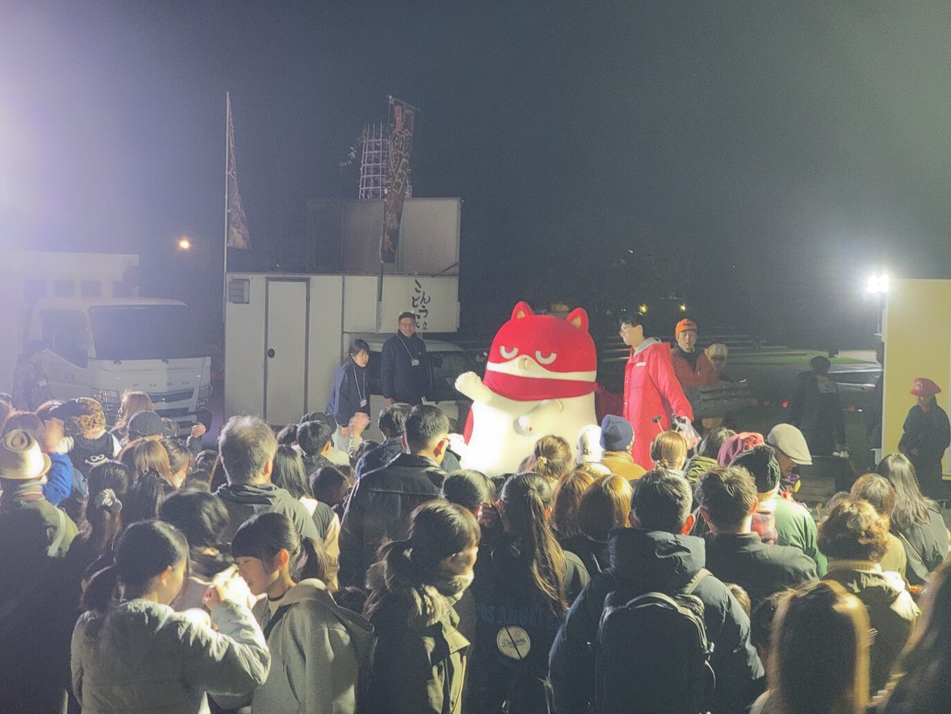 マルハンは、端玉交換で集まったお菓子を寄付し、お菓子まきのメインスポンサーとして参加しました。当日は、にゃんまるをはじめとするスタッフがステージ上からお菓子をまき、子どもたちの歓声が会場に響き渡りました。
