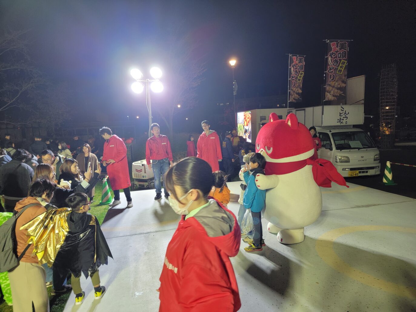 当日は、マルハン公式キャラクター「にゃんまる」も張り切って登場しました!かぼちゃランタンの光に照らされながら子どもたちに囲まれ、「かわいい!」「写真撮って!」と多くの声が上がりました。