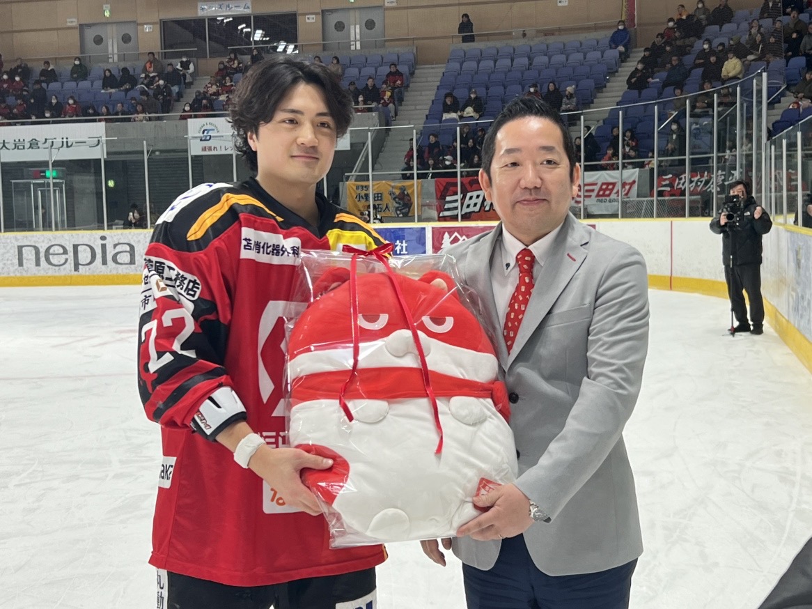 「高校時代の恩師が来場され、偶然の再会がありました。イーグルスの熱狂的なファンで、毎試合欠かさず釧路から応援に来ているとのことです」