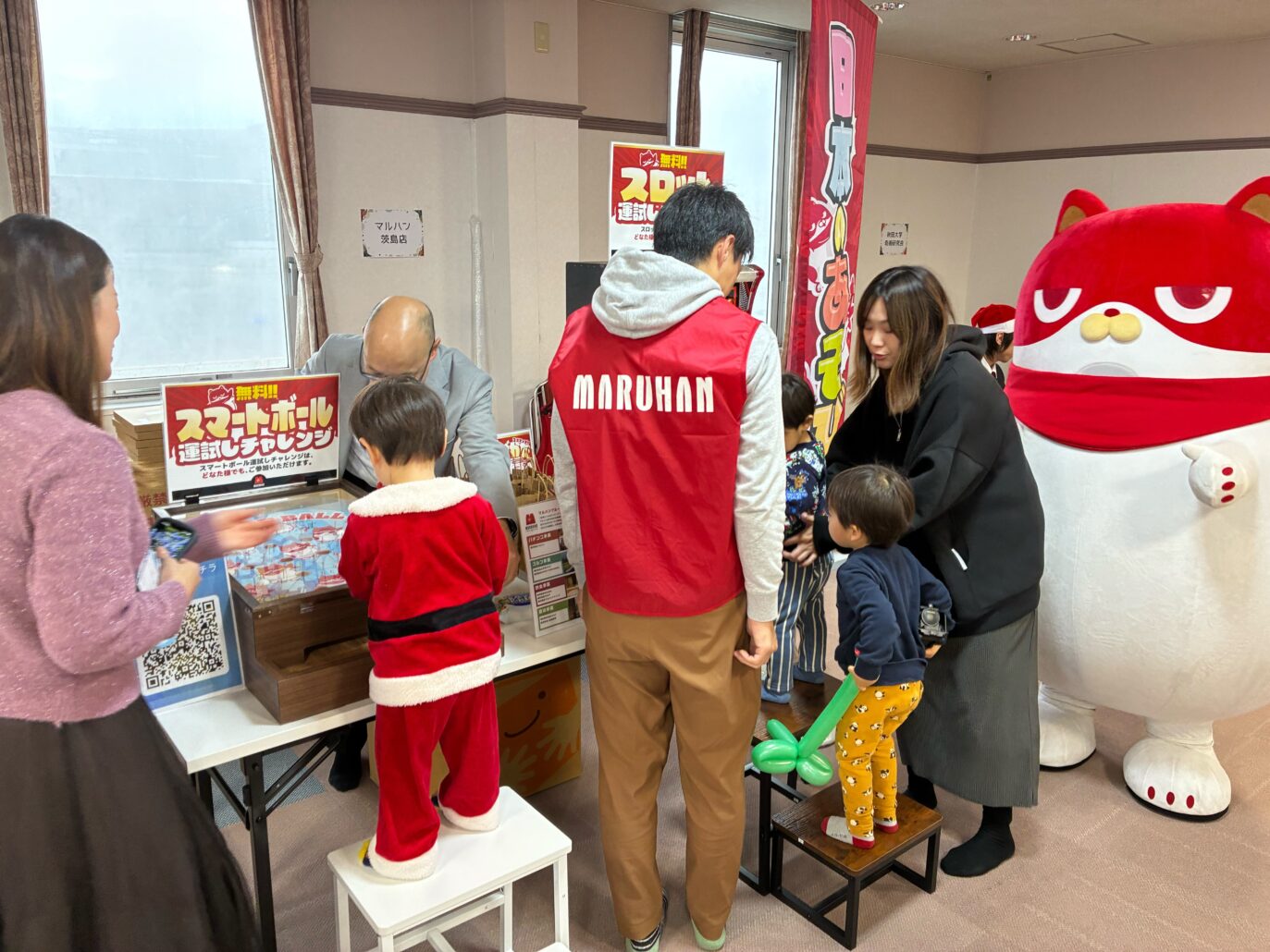 今回のイベントは、チェリッシュ保育園で行われたクリスマス会の一環として開催されました。会場には園児や保護者の皆さまが集い、終始あたたかな雰囲気に包まれていました。マルハンからは茨島店のスタッフ4名が参加し、スロットやスマートボールの体験ブースを展開。クリスマスの特別な一日を、遊びを通じて一緒に楽しむ時間となりました。