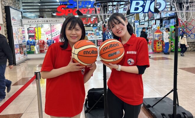 イベントには、にゃんまるに加えて福井ブローウィンズのマスコットキャラクター「BOOZ(ぶーず)」も登場しました。キャラクター同士の仲良しな姿ににより、会場はさらににぎわいを見せました。